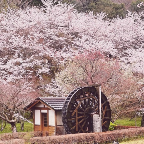 豊後高田市並石ダム周辺 サクラと水車 こっとん村