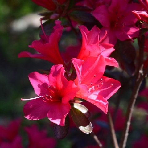 庭の赤いツツジが咲き出しました。