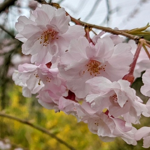 八重紅しだれ桜 うす紅色の花びらが綺麗です