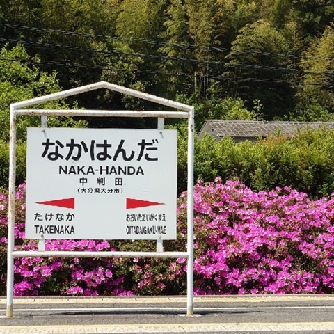 駅名標とツツジ