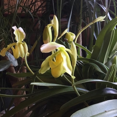 パフィオペディラムの花 今年は16個の花がつきました